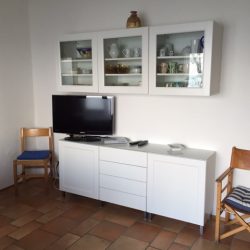 La villa, arredata con gusto, è costituita da soggiorno con tavolo, sofà e TV satellitare, due camere da letto, entrambe matrimoniali e con letto aggiunto, un cucinotto e bagno con vasca, doccia e lavatrice. La dependance è uno spazioso monolocale con letto matrimoniale, TV e frigo bar, bagno con doccia. Tutte le stanze si affacciano direttamente sul mare. Aria condizionata e WI-FI.